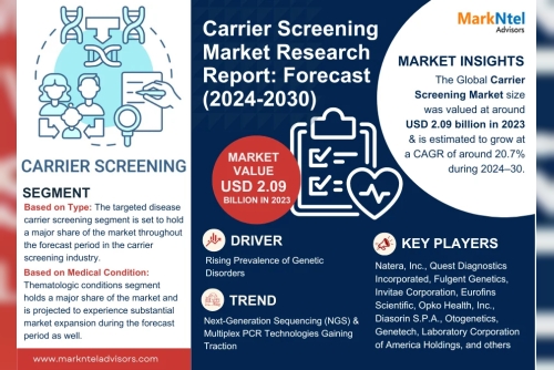 MarkNtel Advisors Releases Comprehensive Study on the Carrier Screening Market, Forecasting Strong Growth from 2024 to 2030